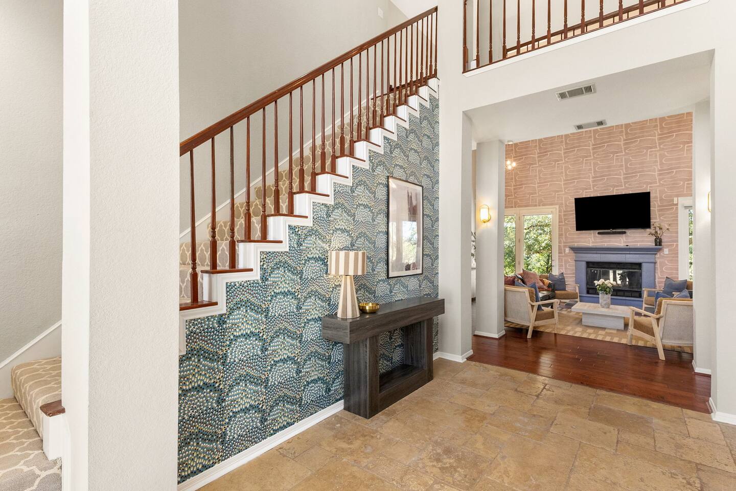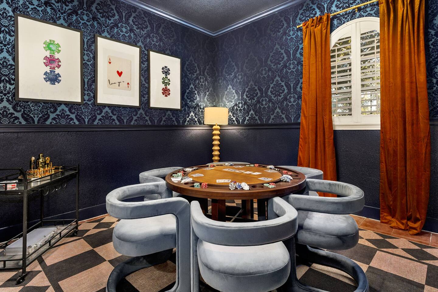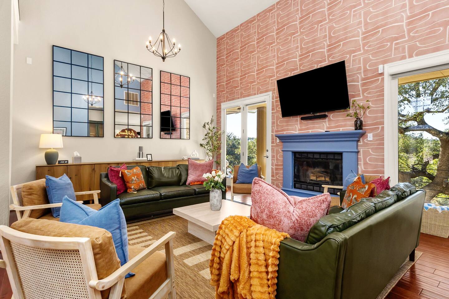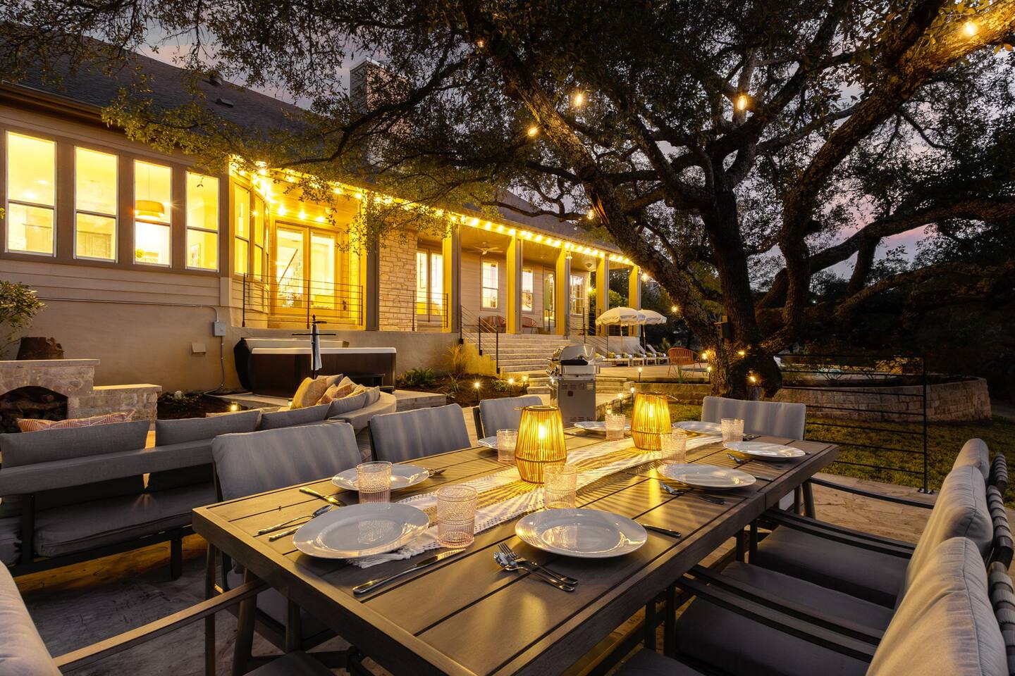 🏡 Perfect for Large Groups, Families & Multi-Generational Stays The home features multiple gathering spaces, a chef’s kitchen, large bedrooms, renovated bathrooms, high-speed WiFi, Sonos speakers, workspaces, and entertainment for all ages. Whether you're here for a wedding, a brewery weekend, or a Hill Country getaway, Moulin Rose is set up for effortless group living. 🌿 Resort-Style Outdoor Living Enjoy a private backyard designed for relaxation and fun: -Pool & hot tub -Fire pit -Outdoor dining patio with hill country view -BBQ grill -Bocce ball court + yard games -Children’s play scape -Slip and slide -Frisbee golf -Hammocks -Pool Loungers -Quiet residential setting -Pickleball court coming Spring 2026 The outdoor area is ideal for family gatherings, lounging in the sun, and unwinding after winery and venue visits. 🎮 Game Room + Entertainment Spaces The home includes multiple indoor entertainment zones for guests of all ages: -Game room with pool table -Arcade games -Poker room -Foosball -Pool table Board games for families and kids 100 inch smart projector with Sonos speakers A perfect setup for rainy days, group competitions, or evening fun. 🛏️ 6 Bedrooms — Sleeps 16 Comfortably The layout offers privacy and comfort for large families and groups: --6 thoughtfully designed bedrooms -4 newly renovated modern bathrooms -Multiple living areas for lounging Master Bedroom (Downstairs) - 1 King Bed, Trundle (2 twin beds), ensuite bathroom with shower and bathtub, Roku TV Bedroom 2 (Downstairs) - 1 King Bed, ensuite bathroom with shower/bathtub, Roku TV Bedroom 3 (Upstairs) - 2 King Beds with getting ready station, Roku TV Bedroom 4 (Upstairs) - **entrance only from bathroom, Bunk with 2 Queen beds, desk, Roku TV Bedroom 5 (Upstairs) - 1 King Bed, Jack n’ Jill bathroom with shower, Roku TV, Bedroom 6 (Upstairs) - 1 King Bed, desk, Jack n’ Jill bathroom with shower, Roku TV 💻 Work-Friendly Features Ideal for remote workers, wedding prep, or corporate teams: -High-speed internet -Multiple desks/workstations -Strong WiFi coverage throughout the home You're minutes from the area’s most popular destinations: Wedding Venues Nearby The Arlo — 11 min The Addison Grove — 11 min Prospect House — 13 min Camp Lucy — 18 min Vista West Ranch — 23 min Breweries, Wineries & Distilleries Deep Eddy Vodka — 5 min Treaty Oak Distilling — 13 min Jester King Brewery — 14 min Bell Springs Winery — 16 min Vista Brewing — 20 min Dining & Essentials Vespa Rossa - 3 min Oakwood Public Market - 5 min Flores Mexican Restaurant - 5 min H-E-B grocery — 8 min Mercer Street shops — 10 min Abby Jane Bakeshop - 13 min The home is conveniently located while remaining quiet and private.